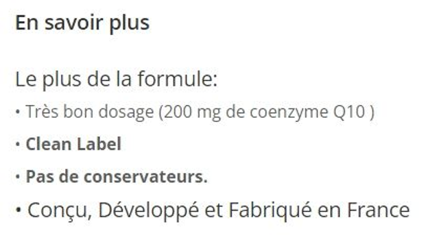 Sa synthèse décline avec l’âge et dans certaines conditions métaboliques. Les besoins peuvent être accrus chez les sportifs, les personnes âgées ou présentant une fatigue intense. La coenzyme Q10 peut également être apportée par l’alimentation mais en très faible quantité.